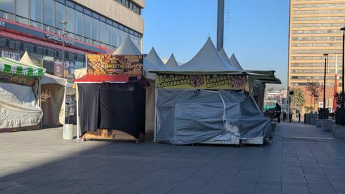 Esta mañana comenzó la instalación de los puestos dedicados a forrar regalos navideños en el primer cuadro de la ciudad, como parte de la temporada comercial autorizada por la administración municipal.