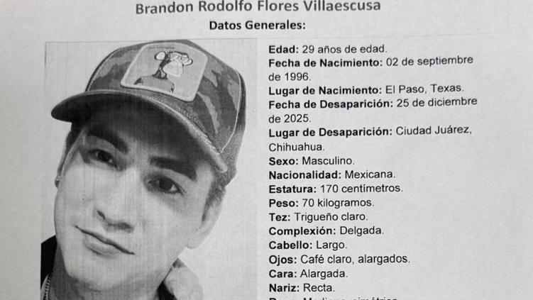 El joven de 29 años de edad, originario de El Paso, Texas, fue visto por última vez el pasado 25 de diciembre en Ciudad Juárez y hasta el momento desconocen su paradero.