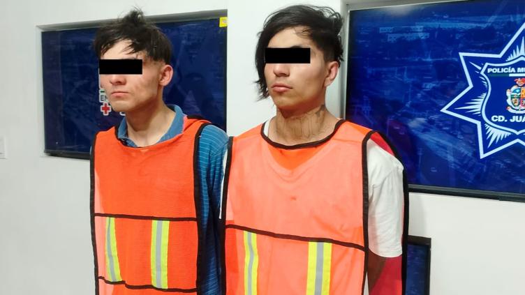 La Secretaría de Seguridad Pública Municipal dio a conocer la detención de Christian Antonio P. S., de 21 años de edad, y Marvin Joel M. R., de 18, por su presunta responsabilidad en la comisión del delito de robo de vehículo con lujo de violencia.