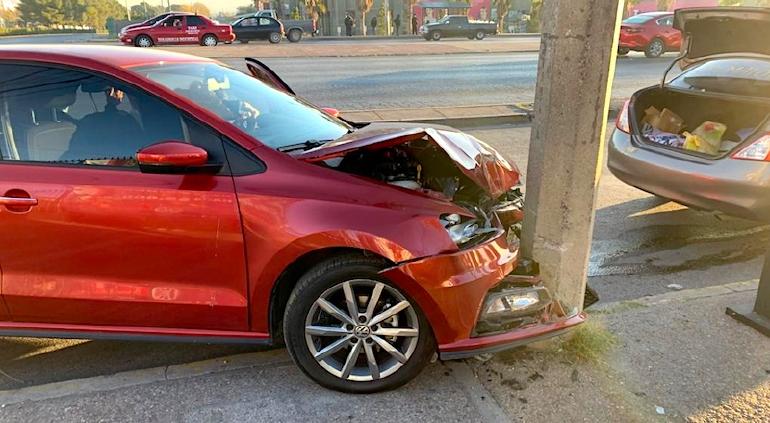 Un fuerte accidente automovilístico se registró la mañana de este domingo, luego de que la conductora de un vehículo Vento perdió el control en la calle Miguel de Cervantes y chocó en contra un poste.