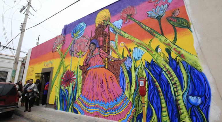 En el Centro Histórico de la ciudad de Chihuahua luce el rostro y las palabras de la poeta rarámuri Dolores Batista, a través del mural realizado por los integrantes del Colectivo División del Norte.