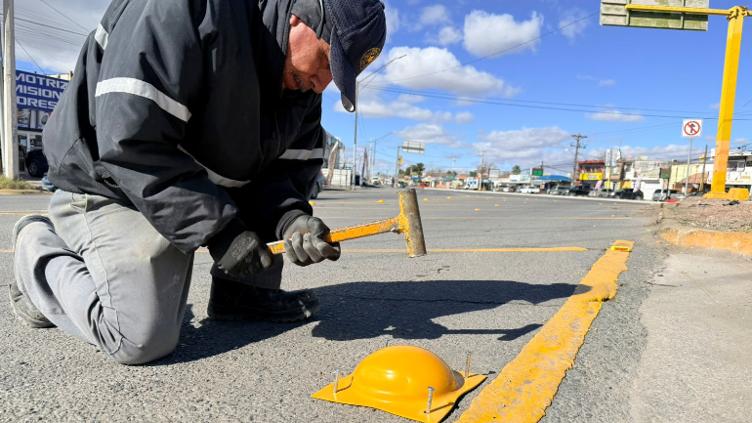 Además, en el cruce de la avenida Waterfill y la calle Ramón Rayón, se colocaron reflejantes y boyas viales, lo que ayudará a mejorar la visibilidad, ordenar el tránsito y reducir riesgos de accidentes, especialmente en una zona con alto flujo de vehículos.