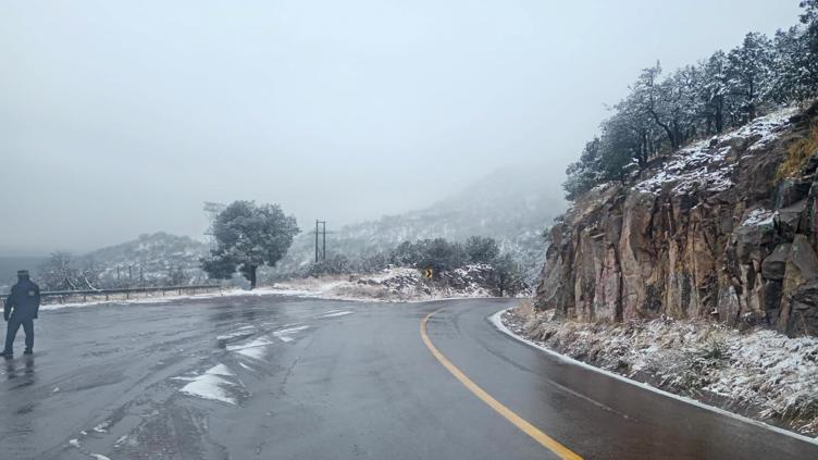En Gómez Farías se presentó nieve ligera; sin embargo, el tramo Gómez Farías–Namiquipa, en la zona conocida como La Cuesta del Toro, sigue abierto a la circulación.