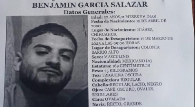 Juarense recurrió a las redes sociales para buscar a su pareja, Benjamín García Salazar, de 23 años de edad, quien desapareció el pasado 17 de marzo.