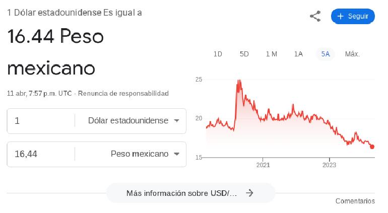 El Banco de México (Banxico) cerró sesión este jueves 11 de abril con el dólar spot, referencia entre bancos y mercados, en tan solo 16.4360 pesos.