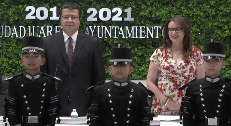 El presidente Armando Cabada Alvídrez felicitó a la banda de guerra por su esfuerzo y les solicitó presentarse en la próxima sesión solemne.