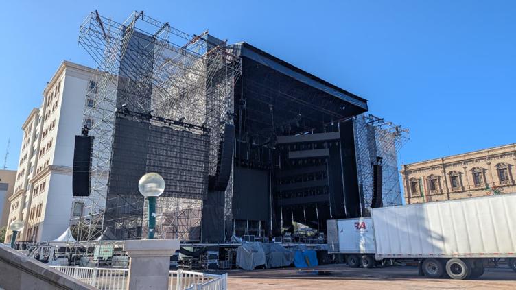 Al mismo tiempo continúan las labores en la estructura metálicas del escenario y la prueba de sonido para garantizar la interpretación de los siete artistas invitados, desde locales hasta nacionales, todos exponentes del género de regional mexicano.