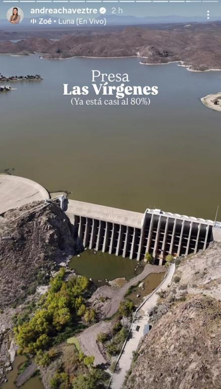 Imágenes de presa Las Vírgenes que compartió Andrea Chávez (13 de noviembre 2025).