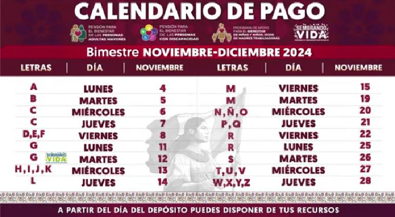 El calendario de pagos se llevará a cabo entre el 4 y el 28 de noviembre con la dispersión de apoyos organizada de acuerdo con la letra del primer apellido de los beneficiarios. Montiel enfatizó que cada día se dispersarán entre 1 y 1.1 millones de apoyos