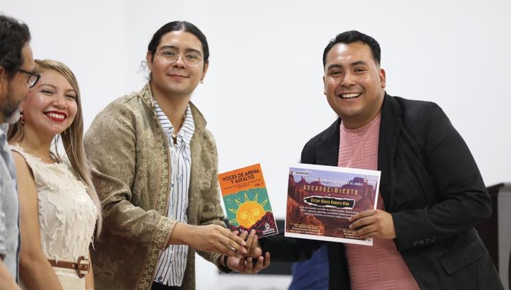 Este día, llevaron a cabo la presentación del libro Voces de Arena y Asfalto: Antología de las Juventudes Juarenses, el cual contó con la participación de 22 jóvenes escritores.