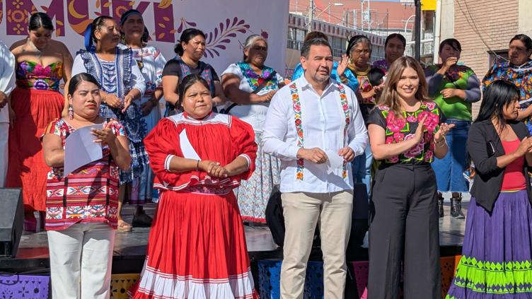 La presidenta del DIF, Rubí Enríquez; Elvira Urrutia, directora del Instituto Municipal de las Mujeres; la regidora Mayra Castillo; Diana Lozano y Rosalinda Guadalajara del departamento de atención a la mujer indígena del IMM, se sumaron al evento inaugural.