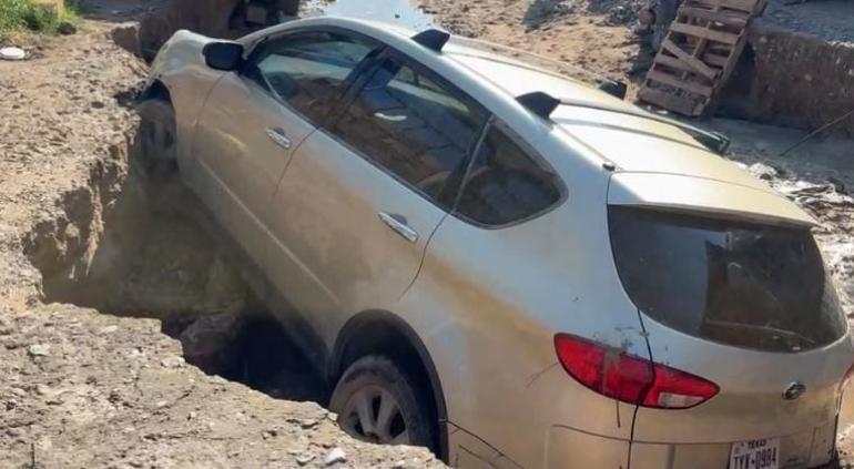 Entre los vehículos afectados algunos de ellos quedaron atrapados entre el lodo, mientras que otros cayeron a una zanja que se formó.