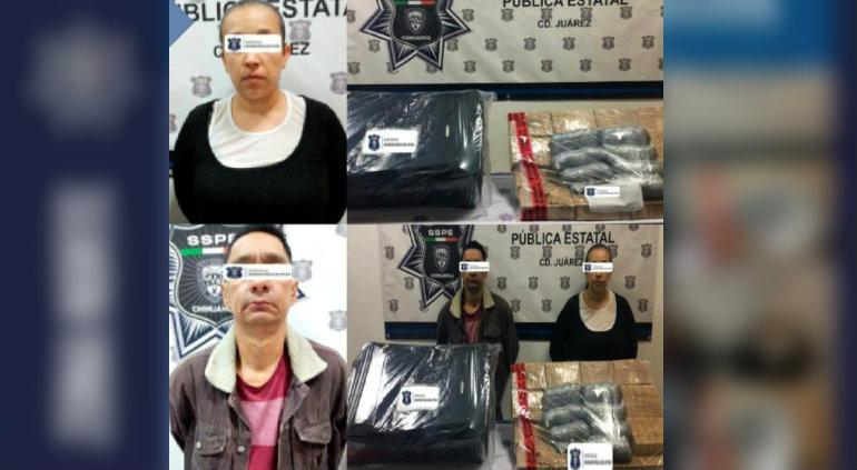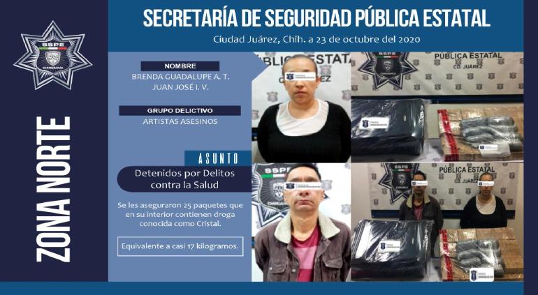 Los ahora detenidos llevaban consigo 25 paquetes de droga que resultó ser cristal, la cual tenía un peso aproximado de 17 kilos.