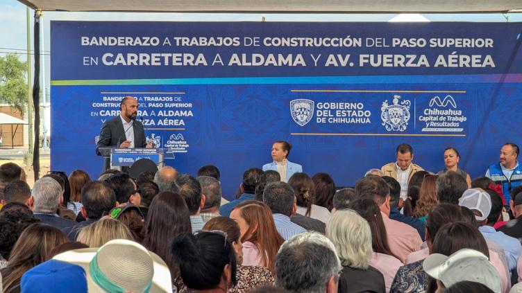 Acudió Valdéz al banderazo para dar inicio a la construcción del paso superior de la carretera Aldama y Fuerza Área, en representación de la gobernadora del Estado, María Eugenia Campos Galván.