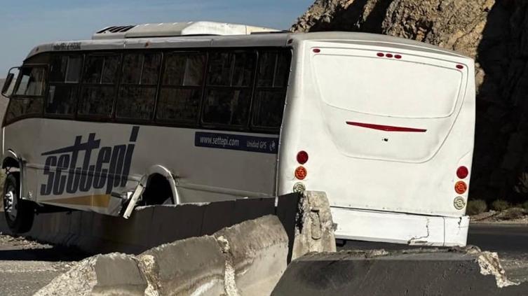 El conductor de un camión de transporte de personal chocó contra barreras de concreto en el Camino Real e incluso quedó sobre las mismas.