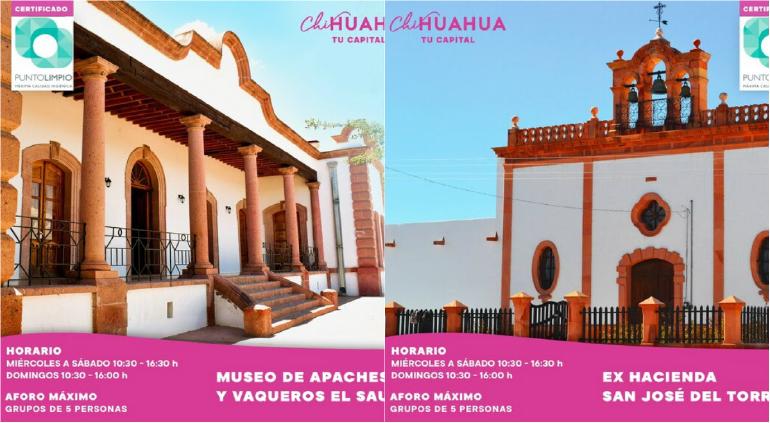 El Municipio de Chihuahua abrirá este sábado 10 de octubre las exhaciendas de El Sáuz y San José del Torreón, atractivos turísticos autorizados en el amarillo del Semáforo COVID.