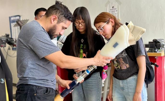 La actividad también sirvió como un espacio de formación profesional, al contar con la participación de alumnos de la Universidad Tecnológica de Ciudad Juárez (UTCJ). Los estudiantes asistieron como observadores para conocer de cerca el proceso técnico de elaboración de prótesis, integrando la experiencia práctica a su formación académica en beneficio de la comunidad.