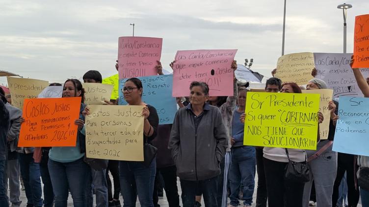 “Costos justos para renovaciones de permisos y aperturas 2026”, “Sr. Presidente reconocemos su labor pero en comercio podemos estar mejor”, “¡No acoso!, ¡no amenazas!”, fueron las frases que colocaron en diversas cartulinas; los comerciantes pidieron además que haya cuotas justas para personas con discapacidad y de la tercera edad.