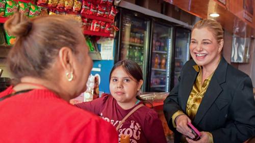 Como parte de su visita, acudió también a un establecimiento donde se venden las tradicionales banderillas, platillo emblemático del primer cuadro de la ciudad, y posteriormente recorrió diversas tiendas dedicadas a la venta de artículos de electrónica, telefonía y otros productos.