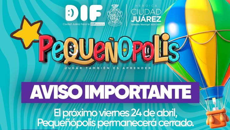 El DIF Municipal comunicó que hoy 24 de abril estará cerrado Pequeñópolis, por lo que piden a la ciudadanía comprensión.