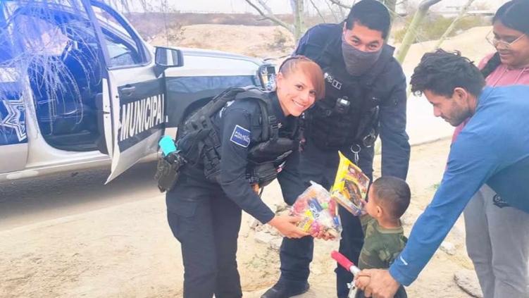Los elementos entregaron bolsitas con dulces, monos de peluche y carritos de juguete a niños que se encontraron durante sus labores de patrullaje.