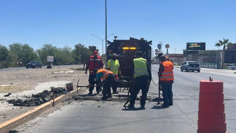 Las labores se llevan a cabo en el tramo que va desde Francisco Villarreal Torres hasta la avenida Rafael Pérez Serna, donde cuadrillas trabajan en el arreglo de grietas y baches en ambos sentidos.