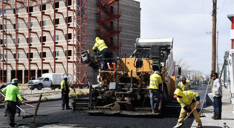 La Dirección General de Obras Públicas informó que avanza la repavimentación de la calle Rubén Posada Pompa, en el tramo que va de Plutarco Elías Calles a Adolfo López Mateos.