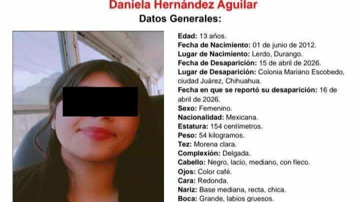 De acuerdo con el reporte de la Fiscalía General del Estado, Daniela había sido vista por última vez en la colonia Mariano Escobedo, en Ciudad Juárez.