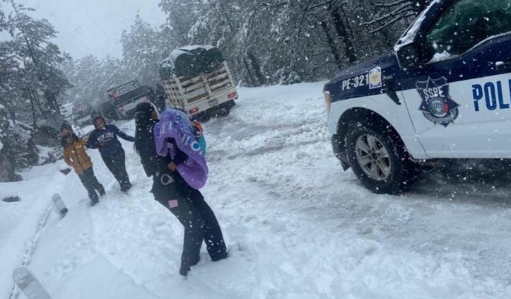 En una intervención oportuna ante las severas condiciones climáticas que azotan la región serrana, elementos de la Secretaría de Seguridad Pública del Estado (SSPE) lograron el rescate de cuatro mujeres y dos menores de edad que habían quedado atrapados en su vehículo debido a la acumulación de nieve.
