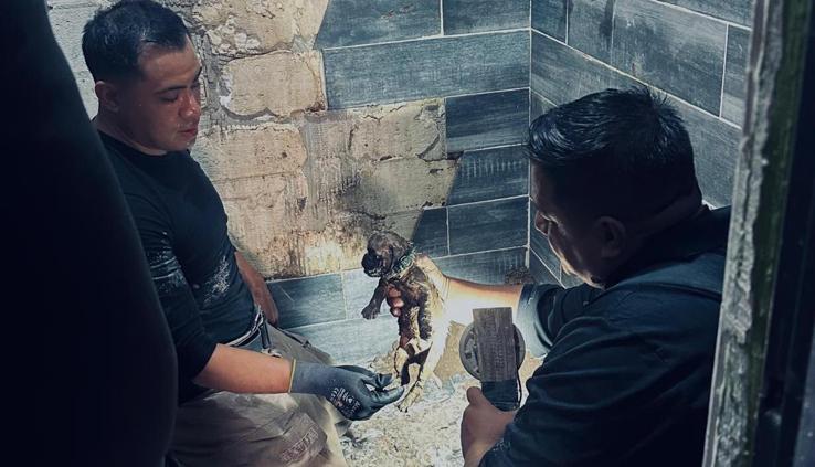 Rescataron a perrito atrapado en desagüe