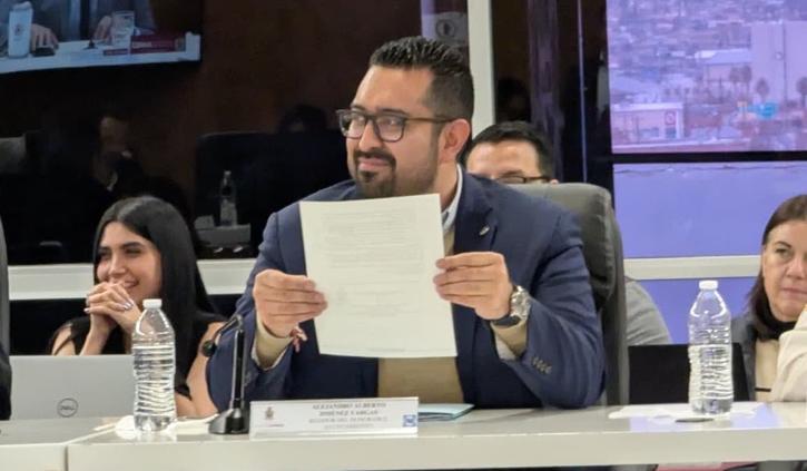 Durante la sesión de Cabildo de este miércoles 28 de enero, la tesorera Dayira Fernández hizo entrega de un documento que contiene por escrito los requisitos para un convenio de pago al respecto del adeudo de predial del Partido Acción Nacional, fue el regidor Alejandro Jiménez quien lo recibió.