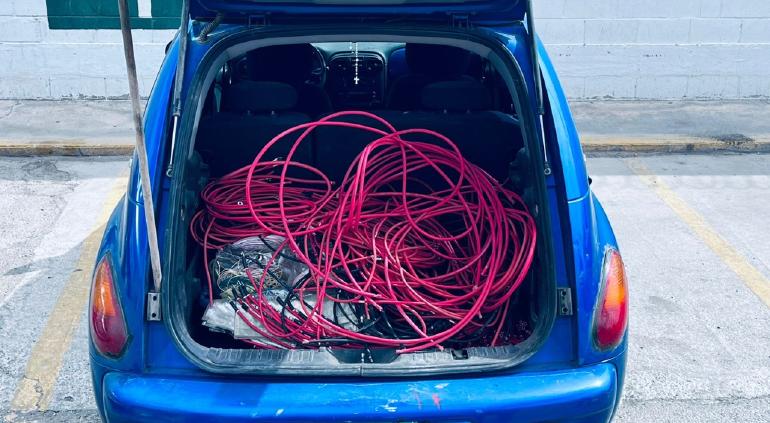 Al arribar al lugar del reporte, los oficiales se entrevistaron con el guardia de seguridad el cual denunció que sorprendió a un empleado subiendo varios metros de cable de cobre a un vehículo Chrysler Pt Cruiser, color azul, modelo 2006, sin ningún tipo de autorización.