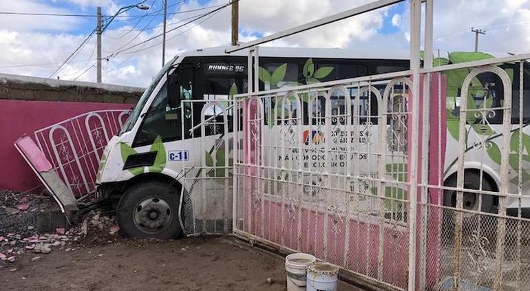 Un camión de transporte público terminó por impactarse contra una vivienda luego de chocar un automóvil en el bulevar Zaragoza.