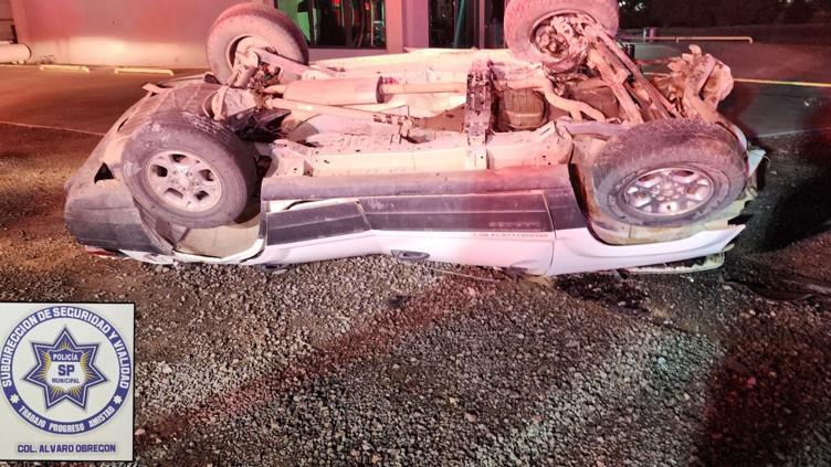 Los agentes llegaron al lugar y encontraron una unidad tipo SUV sobre su toldo, fuera de la cinta asfáltica y con la cabina hacia el poniente; además, la unidad quedó por debajo del nivel de la carretera, se observaron daños visibles en la carrocería y restos en la vía.
