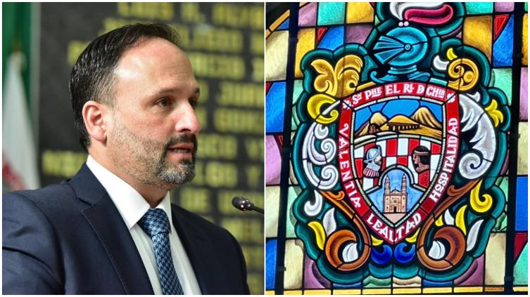 Santiago de la Peña, secretario general del Gobierno, compartió una de sus acostumbradas frases sabatinas, pero en esta ocasión con una foto del vitral con el escudo de armas de Chihuahua desde la sede de la alcaldía.