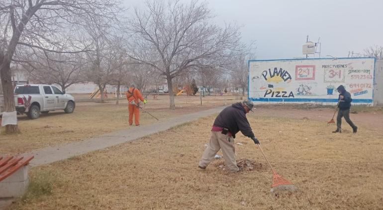 Cuadrillas de la Dirección de Parques y Jardines realizaron acciones de mantenimiento en áreas verdes del fraccionamiento Horizontes del Sur.