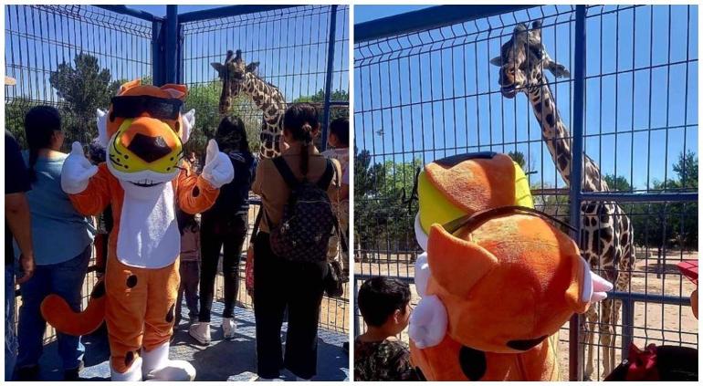 Se pone la botarga y pide que le dejen nombre de "Cheeto" a la jirafa