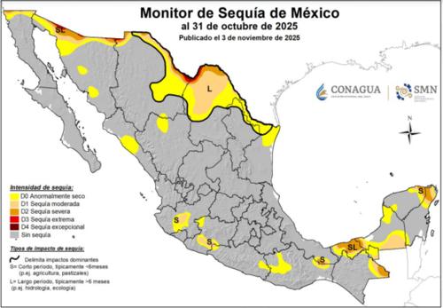 - 4.8% de su extensión está en sequía moderada (subió 1.2 puntos)
