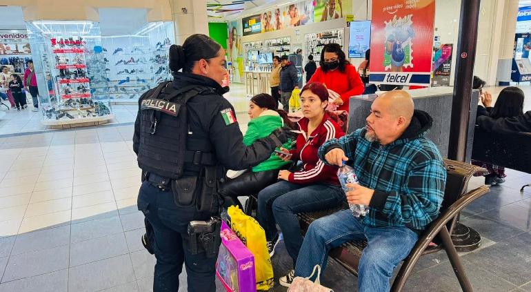 Elementos de la Dirección de Prevención Social de la Secretaría de Seguridad Pública Municipal distribuyeron trípticos informativos en centros comerciales de la ciudad y proporcionó número alternativos al 911.