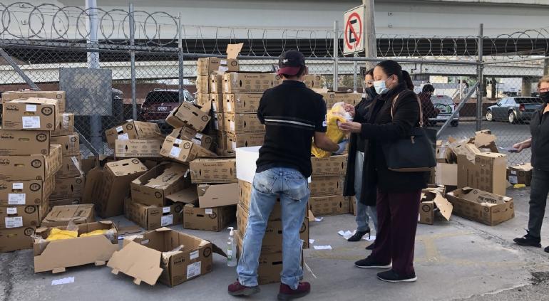 Con motivo de la Navidad, el Sindicato entregó piernas de cerdo a sus miembros, en modalidad ‘drive thru’.