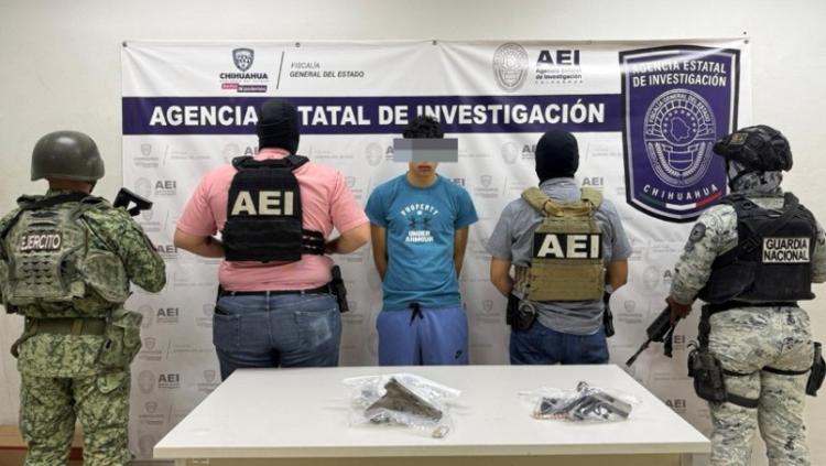 Elementos de la Agencia Estatal de Investigación, en coordinación con la Guardia Nacional, detuvieron a un hombre en Ciudad Juárez por presuntamente portar armas de fuego de manera ilegal.