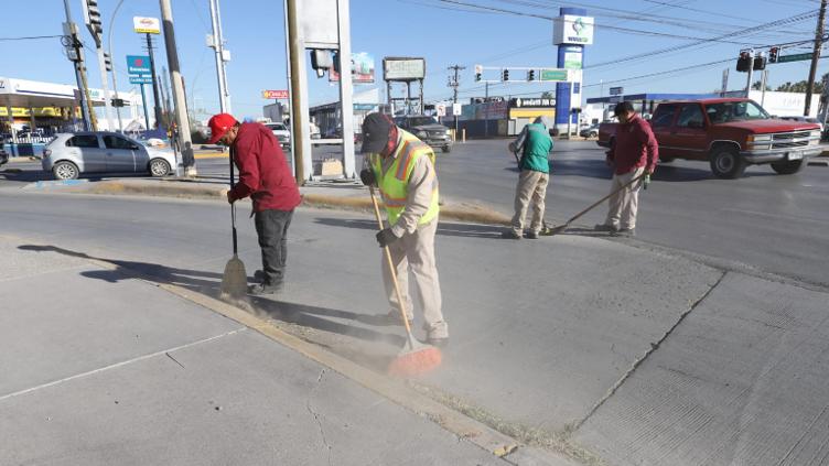 La Dirección de Servicios Públicos Municipales sigue trabajando en diferentes partes de la ciudad para mantenerlas limpias, esto como parte del programa Cruzada del Cambio y en apoyo al próximo Desfile Coca-Cola.