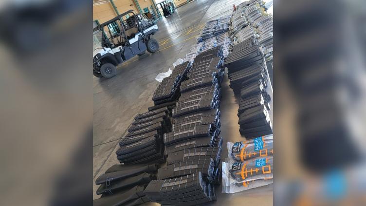 De acuerdo con la información emitida, a este hombre, cuya identidad no fue revelada, lo sorprendieron cuando intentaba cruzar con mil 285 cargadores de arma larga y siete culatas.