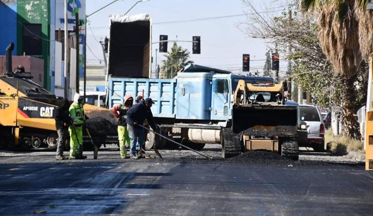 La Dirección de Obras Públicas informó que las cuadrillas trabajan actualmente en el tramo comprendido entre la avenida Adolfo López Mateos y la Plutarco Elías Calles, donde se busca rehabilitar por completo la superficie de rodamiento.