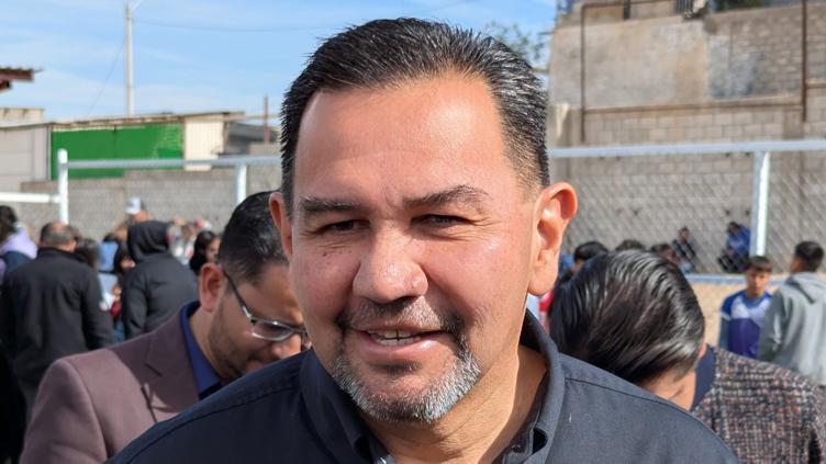 El presidente Cruz Pérez Cuéllar visitó hoy la Escuela Secundaria #56 para hacer la entrega oficial de la cancha de fútbol construida en dicho plantel con recursos del Presupuesto Participativo.