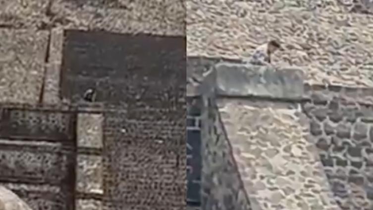 En un video que circula en redes se observa a un hombre que disparó desde la parte alta de la Pirámide de la Luna.