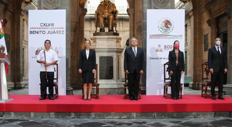 Esto durante su participación en el 148 aniversario luctuoso de Benito Juárez, en donde acudió él, Amlo y su esposa Beatriz Gutiérrez.