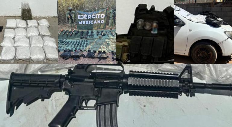 En distintos operativos realizados en el municipio, autoridades federales aseguraron armas de alto poder, droga y equipo táctico, como parte de las acciones de seguridad en la región.