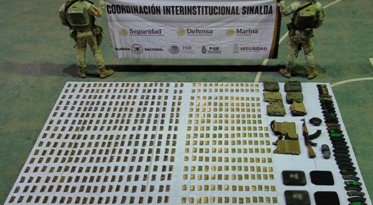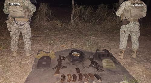 De acuerdo con el reporte oficial, en la acción se localizaron tres armas largas, 43 cargadores y más de siete mil cartuchos útiles, además de tres chalecos tácticos y 10 placas balísticas.
