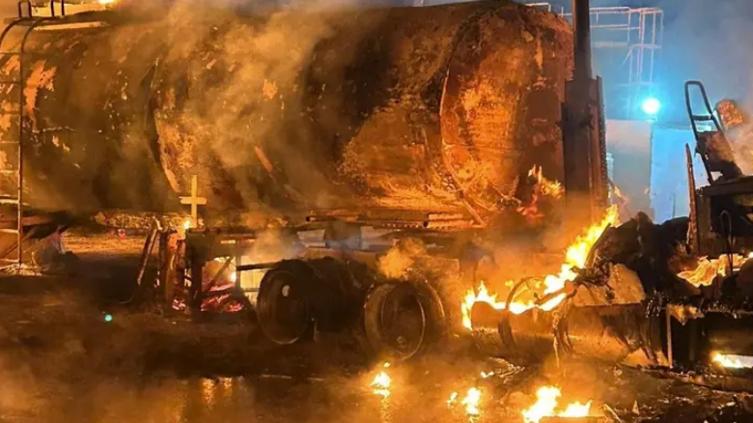 Así fue incendio de pipa de diésel en Tamaulipas